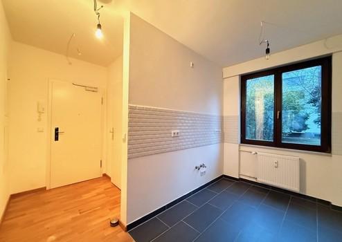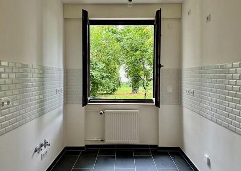 - Offene Wohnküche mit großen Fenstern und elektrischen Rollläden