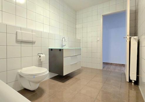Im Jahr 2015 wurde das Badezimmer modernisiert: Die Bodenfliesen wurden erneuert und ein neuer Waschtisch eingebaut, wodurch sich das Bad zeitgemäß und gepflegt präsentiert.