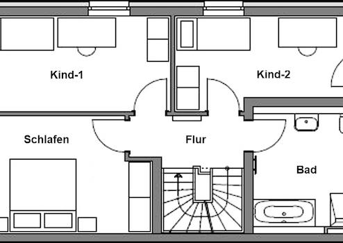 Die Doppelhaushälfte verfügt über insgesamt 3 Etagen und einen Keller (EG+OG+DG+Keller). Im Erdgeschoß befinden sich der große Wohn- Essbereich, die Küche, ein Flur, und ein Duschbad. Im Obergeschoß sind das Schlafzimmer, 2 Kinderzimmer und ein weiteres Bad. Im Dachgeschoss ist ein geräumiges Studio. Im Keller sind ein Hobbyraum, ein Kellerraum und ein Hauswirtschaftsraum. Die genaue Aufteilung ist noch genau bestimm- und variierbar.