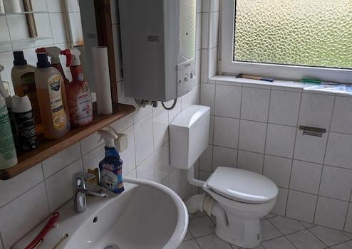 Moderne Einbauküche, Im Bad Fliesen an Wand und Boden sowie ein neuer Durchlauferhitzer von Vaillant und neue Armaturen sowie eine Neue Toilette. Hochwertiger Laminat in Wohnzimmer, Schlafzimmer & Flur sowie Fliesen in Küche & Bad. Ebenfallssteht ein Großer Kellerraum und Dachboden zur Verfügung!