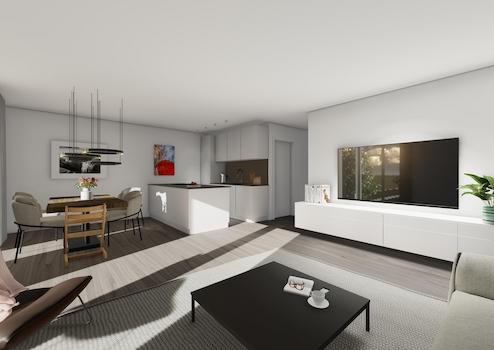 Die Wohnung besteht aus einem offenem Koch- / Wohn- und Esszimmer, 2x Schlafzimmer, Gäste-WC , Bad mit bodentiefer Dusche und großer Sonnenterrasse. Zusätzlich hat jede Wohnung eine Abstellkammer & separaten Kellerraum