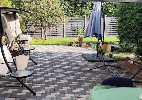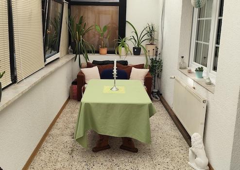 ein Balkon sowie ein separates Gartenhaus zur Verfügung.