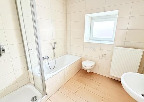 - Tageslichtbad mit Badewanne, Dusche, WC, Waschbecken und Waschmaschinenanschluss