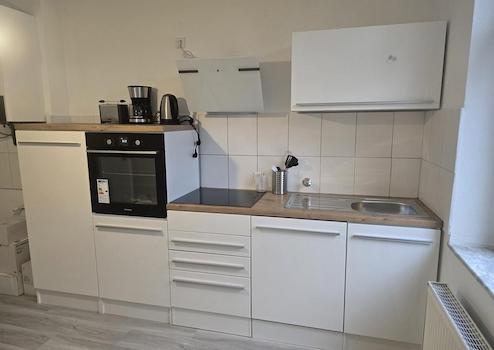 Zu der Wohnung gehört darüber hinaus eine vollständig ausgestattete neue Küche sowie ein Wäschetrockner (Kombi-Gerät).