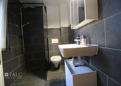 Das helle und ansprechend gestaltete Master-Badezimmer mit Eckbadewanne und separater Dusche rundet den Wohnkomfort ab und lädt zum Entspannen ein.
