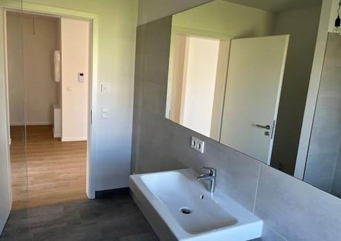 Das modern geflieste Bad verfügt über eine offene Dusche. Es gibt ausreichend Platz für Waschmaschine und Trockner. Die gesamte Wohnung verfügt über eine energieeffiziente Fußbodenheizung und hochwertige Vinyl - Fussböden.