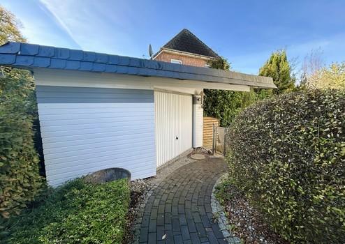 •Garage mit elektrischem Tor, Carport und zwei Gartenhütten
