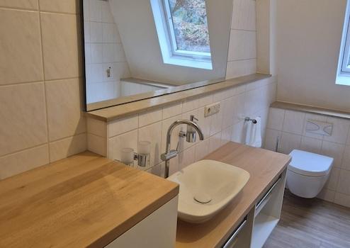 Vollbad, Duschbad, Laminat, Fliesen