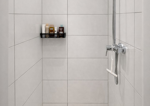Terrasse, Duschbad, Einbauküche, Fliesen