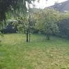 Durch die Küche gelangt man über die Terrasse in den Garten, dessen vorderer Bereich Rasenfläche ist und durch eine Reihe alter Bäume den Obstgarten im hinteren Teil des Gartens abtrennt.