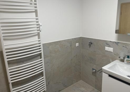 Der Eingangsbereich sowie Küche und Bad sind mit hochwertigen, pflegeleichten Fliesen gestaltet. In Wohn‑ und Schlafzimmer sorgt ein warmes Laminat für eine gemütliche Atmosphäre. Beide Räume bieten großzügige Stellflächen – ideal für Bett, Sofa, Schrank oder eine stilvolle Wohnwand. Ihrer persönlichen Gestaltung sind dabei keine Grenzen gesetzt, sodass Sie Ihr neues Zuhause ganz nach Ihren Vorstellungen einrichten können.