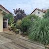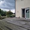 Der liebevoll angelegte Garten mit überschaubarem Rasenanteil ist nach Süden ausgerichtet. Diesen erreicht man entweder vom Wohnbereich über die ca. 35 m² Holzterrasse aus Hartholz oder durch den Kellereingang an der Südseite des Hauses. Im Sommer ist die Terrasse vom Fußweg aus, der komplett an der Ostseite des Grundstücks verläuft, kaum einsehbar. Ebenfalls an der östlichen Gebäudeseite schließt direkt an das Haus ein Carport mit abschließbarem Fahrradschuppen an.