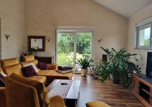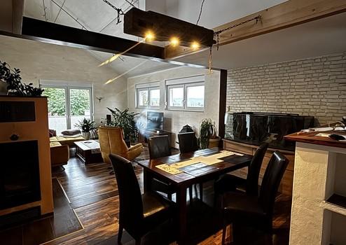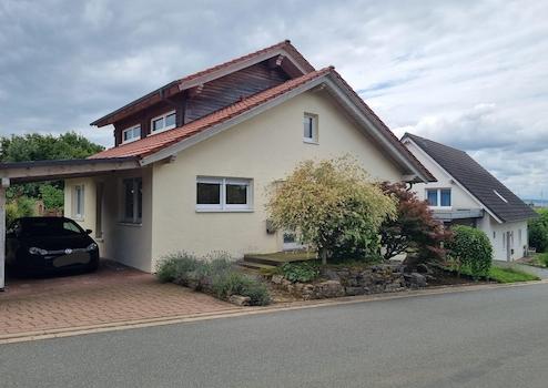 Alle Fenster im Haus sind mit Dreifachverglasung ausgestattet. Im Erdgeschoss haben alle Fenster Außen-Jalousien. Weiterhin sind alle Räume im Erdgeschoss - ausgenommen Gäste-WC und Vorratskammer - mit einer Fußbodenheizung ausgestattet. Die restlichen Räume werden mit Wandheizkörpern beheizt. Als Wärmeerzeuger dient eine Luft-Wärmepumpe der Fa. MHG mit 11 kW Leistung und zusätzlich ein gemauerter, wasserführender Grundofen. Dieser kann mit Holzscheiten bis 45 cm Länge beheizt werden und ist zusätzlich mit einem nachgeschalteten Kaminzug ausgestattet. Der Ofen verfügt über eine elektronische Abbrandautomatik und einer automatischen Steuerung. Die Gesamtleistung des Ofens beträgt 18 kW, wobei 9 kW direkt in die Umgebung und 9 kW über die Wassertasche in den im Keller befindlichen 1.000 Liter Pufferspeicher abgegeben werden. Zusätzlich im Keller ist ein Trinkwasserspeicher mit 240 Litern verbaut. Im Haus ist die Warmwasserverteilung über eine Ringleitung gelöst. Dies bedeutet, dass man an allen Mischbatterien des Hauses innerhalb weniger Sekunden heißes Wasser zur Verfügung hat. Alle Stromleitungen und die Leitungen des hauseigenen LAN-Netzwerks sind ausnahmslos in Leerrohren bzw. Kabelkanälen verlegt. Dadurch sind eine spätere Änderung und die Verlegung weiterer Leitungen einfach und unkompliziert. Das Netzwerk könnte auch zur Steuerung der Haustechnik verwendet werden. Die nachträgliche Installation einer PV-Anlage oder Solar-Thermie auf dem Dach wäre durch die Nutzung der vorhandenen Kanäle sehr einfach.