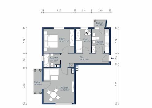 Gesamtzustand. Auf ca. 63,3 m² Wohnfläche