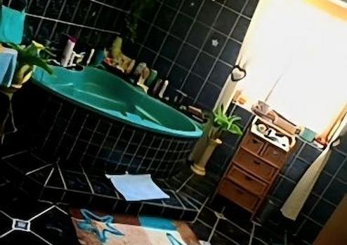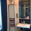 Ebenso würde in dem grossen , schwarz-mint farbenen Bad der riesige Bad-Hängeschrank mit im Haus verbleiben, falls gewünscht (hier war der Neupreis ca 8000€)