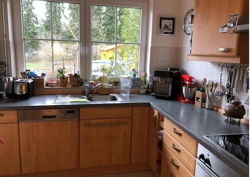 Erdgeschoss mit geräumiger Küche mit Einbauküche und Platz für einen Esstisch, inkl. allen Geräten, wie z.B. neuer Herd, neuer Kühlschrank und Spülmaschine.
