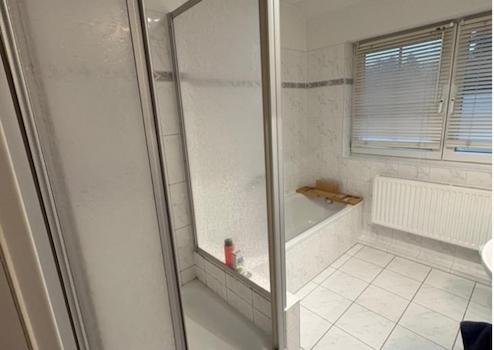 1. OG bestehend aus 3 Zimmern und Badezimmer gefliest mit Badewanne und Dusche.