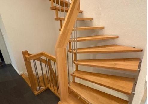 Neue Treppe aus massivem geöltem Buchenholz vom EG zum 1. OG.