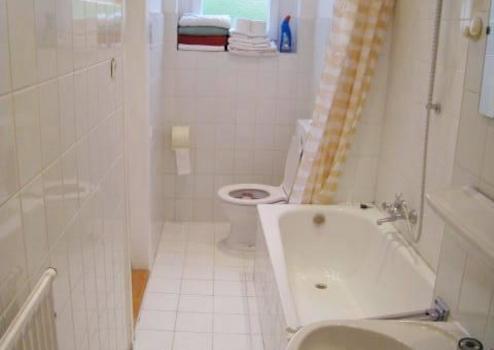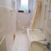Wannenbad/WC mit Fenster, Zugang vom Flur und von einem Zimmer.