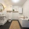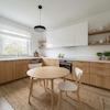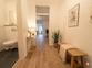 An den Wohn- und Essbereich schließt sich ein eigener Küchenraum an, der ebenfalls hell gestaltet ist und eine angenehme räumliche Trennung zur Wohnebene ermöglicht. Ein kleiner Flur verbindet den Wohnbereich mit den privaten Räumen. Von hier aus erreicht man sowohl das Kinderzimmer oder Büro als auch das großzügige Elternschlafzimmer. Das absolute Highlight: Das große Badezimmer mit Badewanne ist direkt über eine Durchgangstür mit dem Elternschlafzimmer verbunden. Dieser private Zugang bietet einen besonders hohen Wohnkomfort, da nächtliche Wege kurz bleiben und man das Bad diskret nutzen kann, ohne den Flur zu durchqueren. Gleichzeitig ist das Badezimmer weiterhin über den Flur erreichbar, sodass es flexibel genutzt werden kann. Insgesamt präsentiert sich die Wohnung hell, offen und mit einem modernen Stil, der durch klare Linien und hochwertige Renovierungsarbeiten eine sehr angenehme Wohnatmosphäre schafft.
