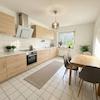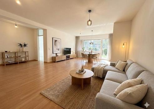 Diese renovierte 3-Zimmer-Wohnung im Untergeschoss verbindet eine angenehm helle Wohnatmosphäre mit einem direkten Zugang ins Grüne – eine Kombination, die in dieser Lage selten zu finden ist. Schon beim Betreten empfängt eine offene, freundliche Diele, die mit einem separaten Gäste-WC ausgestattet ist. Dadurch lässt sich der private Wohnbereich ideal vom Gästebereich trennen, was den Komfort im Alltag deutlich erhöht. Von der Diele gelangt man in den großzügigen, lichtdurchfluteten Wohn- und Essbereich, der durch eine große Fensterfront einen schönen Blick ins Freie bietet. Der direkte Zugang zur eigenen Terrasse und dem kleinen Garten ist eines der Highlights dieser Wohnung: Ein Ort, an dem man frische Luft genießen, morgens entspannt Kaffee trinken oder warme Sommertage direkt vor der eigenen Tür verbringen kann.