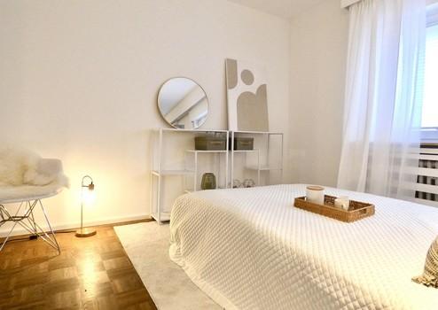 Der ca. 30 m² variabel nutzbare Raum, überzeugt durch zwei Fensterflächen, Parkettboden, Wandnischen, einer Doppeltür mit Glaselementen und Zierprofilen und als besondere Zierde ein Halbbogen von 1960. Die Kombination dieser Elemente schaffen ein individuelles Wohnambiente und vermitteln ein Gefühl von Geborgenheit. Je nach der persönlichen Wohnsituation kann man entweder ein Wohn- und Schlafbereich mit Doppelbett oder einen Wohn-/Arbeitsraum einrichten.