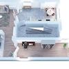 Ein zum ruhigen Innenhof ausgerichteter Eingangsbereich mit Wohnküche und ein grosser heller Raum nach Westen mit angrenzendem Zimmer zum Tageslichtbad zeichnen diese individuelle Wohnung mit 62 m² Wohnfläche aus.