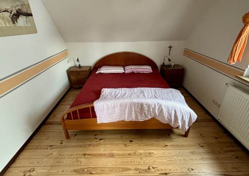 Im Obergeschoss befinden sich ein großes Bad, ein WC und zwei weitere Zimmer.