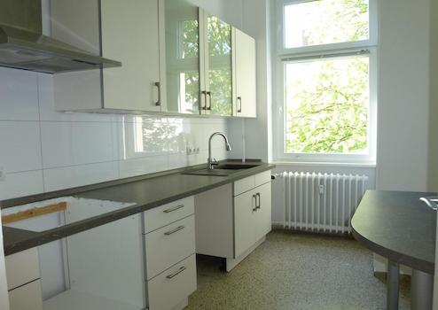 Sehr helle Wohlfühlwohnung im 3. OG eines Altbaus, zwei große nach Westen ausgerichtete Zimmer mit freier Sicht Richtung Leydenallee, Balkon. Angenehme Bewohnerschaft, gepflegtes Haus. Dielenboden, Kellerabteil, Abstellmöglichkeiten in der ehemaligen Waschküche, zB Kinderwagen, Fahrrad, etc. Kein Fahrstuhl