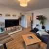 •Helles Wohnzimmer mit gemütlicher Sofaecke und großem Fernseher
