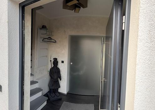 Diese exclusive Stadtvilla wurde 2022 stilvoll und sehr durchdacht auf einem 806m² großen Eigentumsgrundstück erbaut und besticht durch eine ganz exklusiven Austattung. Die Stadtvilla verfügt außen über 2 extrem groß gepflasterte Parkplätze auf dem Grundstück. Im Inneren ist bereits durch aufwändige Wandtechniken eine wohlfühlatmosphäre geschaffen die seines gleichen sucht. Ausgestattet und sehr durchdacht wird das Erdgeschoss durch die Luxusküche vom Premiumhersteller Schüller erhellt. Eine wunderbare Symbiose mit Eindrucksstarker Wirkung erhält man beim Betreten in die Stadtvilla. Das eintreten in diese wunderschöne Immobilie lässt Herzen Höher schlagen. Die Aufteilung im Erdgeschoss ist Loftartig gestaltet sodass man mit einem kleinen Privatenbereich des Flures in dem ein Gäste WC mit ebenerdiger Dusche und der Treppenaufgang in die Obere Etage abgeht beginnt. Nach Freilegen der Privacy Milchglas Schiebetür befindet man sich in dem großzügigem Geschäftsraum der sich wunderbar für ein Empfangsbereich darbietet und gleichzeitig das zusammenarbeiten und viel entscheidener zusammenleben ermöglicht. Der Wohnbereich hat 2023 eine aufwendige Wandtechnik erhalten und ist somit definitiv ein Highlight. Die Luxusküche ist von der Marke Schüller und verfügt über ein separaten Raum der sich bestens eignet um Lebensmittel oder andere Dinge zu lagern. Der Waschmaschinenraum in dem sich die Heizungsanlage befindet ist so exklusiv wie selten gesehen uneinsichtig gestaltet und durch ein sehr besonderes Highlight abgekapselt so dass ein Geräuschloses Waschen ermöglicht wird. Im Obergeschoss befindet sich ein Wellness Artiges Badezimmer mit Dusche und einem 2 Personen Whirlpool mit Turbodüsen. Hier wird entspannen groß geschrieben denn auch hier befindet sich eine Wandtechnik die extreme Ruhe ausstrahlt in Verbindung mit dem integrierten Radio was sich im Whirlpool befindet ist die erholung quasi vorprogrammiert. Desweitern befinden sich im Obergeschoss 2 Schlafzimmer und ein Ankleidezimmer. Das Ankleidezimmer wurde 2024 als letzte Renovierungsmaßnahme getroffen und schafft somit Arbeit und Familie zu kombinieren. Die Möglichkeiten sind groß sich Platzmäßig einzurichten oder auszutoben. Die Villa wird im Gesamten Haus über eine Fußbodenheizung gemütlich gewärmt. Das Steuern zu den Einzelnen Räumlichkeiten lässt sich in Jedem Raum separat Anpassen. Die Photovoltaik Anlage welche auf dem Dach installiert ist sorgt für extrem sparende Verbrauchskosten. Die Villa verfügt über sehr hochwertige Extraangefertigte Rolläden in der Farbe Anthrazit von der Firma Brömse. Diese lassen sich nicht nur durch die Wohnsteuerung anwählen sondern auch durch eine App welches leicht aufs Smartphone installierbar ist. Diese Exklusive Stadtvilla ist eine Immobilie für die Leben auf Hohem Niveau zu schätzen wissen. Für eine Besichtigung werden im Vorfeld Nachweise verlangt um Schaulustige gleich auszuschließen und ernsthaften Interessenten schneller einen Besichtigungstermin anzubieten.