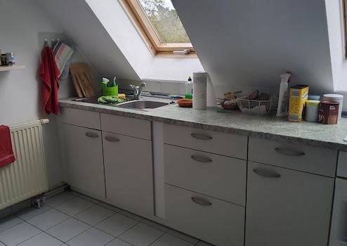 Zur Ausstattung gehört unter anderem eine Einbauküche mit Esstischgruppe.