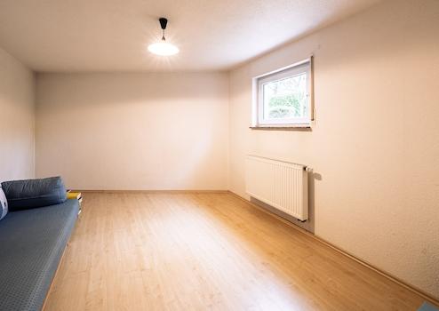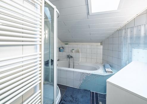 Im Obergeschoss befinden sich neben dem großzügigen Badezimmer, ein komfortables Schlafzimmer sowie zwei weitere Zimmer, die flexibel als Kinderzimmer, Gästezimmer oder Homeoffice genutzt werden können. Das Schlafzimmer verfügt zusätzlich über einen offenen Zugang zum angrenzenden Ankleidezimmer, was für besondere Großzügigkeit und Komfort sorgt.