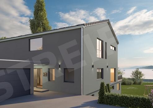 Die folgende Beschreibung widmet sich einer Haushälfte und eröffnet einen Eindruck von Architektur, Raumgefühl und Lebensqualität.