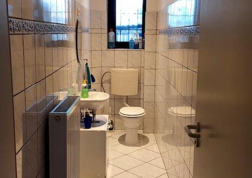 Zudem befindet sich auf derselben Etage ein hell gefliestes Gäste-WC.
