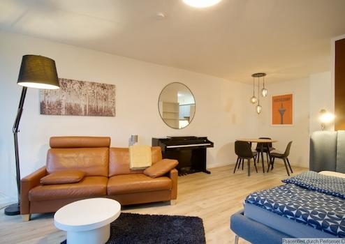 Modern und geschmackvoll möblierte Apartmentwohnung in Toplage in Düsseldorf-Oberkassel, der Stadtteil ist sehr beliebt und bietet ein hochwertiges Angebot an Geschäften und Gastronomie.