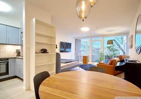 Modern möbliertes Apartment mit Balkon und PKW-Stellplatz in Düsseldorf Oberkassel.