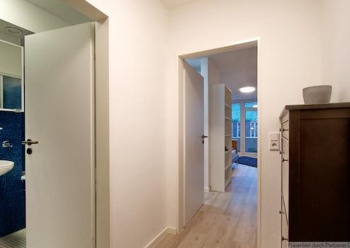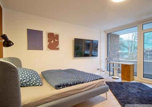 Direkt bei Einzug nutzbar ist der Internetzugang (DSL) mit einer 100MBit Leistung! Das große TV-Gerät funktioniert über Internet - Verbindung über WLAN, Chromecast - und ist schwenkbar. Der große Balkon liegt wie das Apartment nach hinten raus, mit Blick in den Garten. Das Bett ist 1,60 x 2,00 Meter groß.