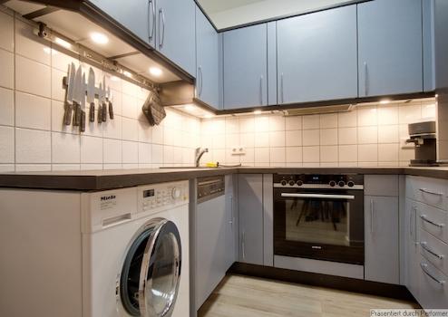 Eine Waschmaschine (Kombigerät Waschtrockner) und Spülmaschine stehen in der Küche zur Verfügung.