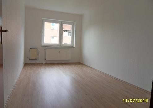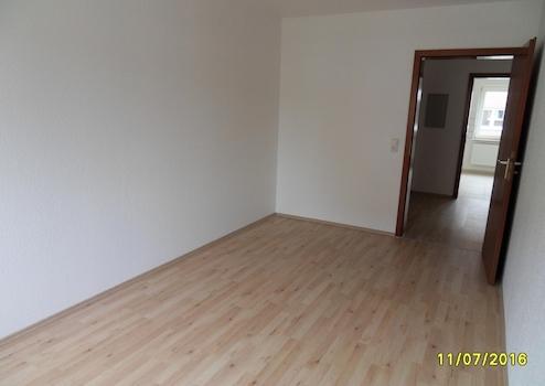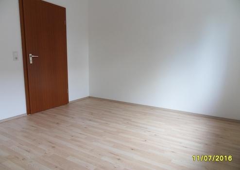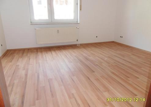 In dieser Wohnung ist im Flur, im großen Wohnzimmer und in der Küche Steinzeug verlegt. Im Kinderzimmer und Arbeitszimmer liegt wohnliches Laminat .