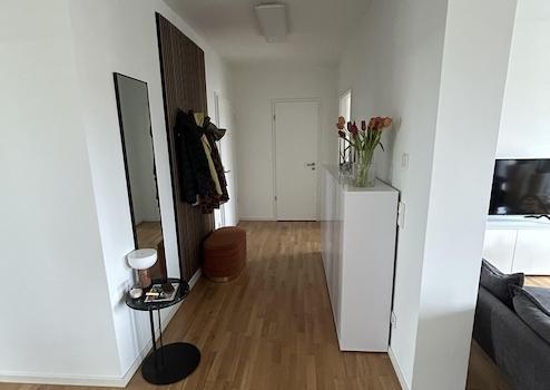 Diese luxuriös ausgestattete 3-Zimmer-Wohnung mit ca. 86 m² Wohnfläche befindet sich im 4. Obergeschoss eines modernen Wohnquartiers (Baujahr 2021) in der Neuen Mitte von Graben-Neudorf. Ein Aufzug erleichtert den Zugang zur barrierefreien Wohnung, die über ein großzügiges Raumangebot und bodentiefe, vierfachverglaste Fenster mit elektrischen Jalousien verfügt.