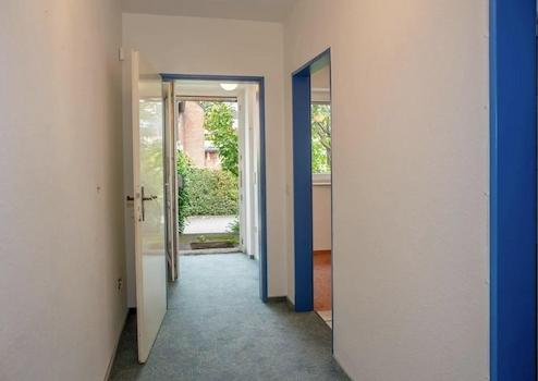 Die Einliegerwohnung verfügt über einen separat eigenen Eingang. Zu den Räumlichkeiten gehören ein Flur, eine Küche, ein Badezimmer sowie ein Wohn - Schlafzimmer. In den neunziger Jahren wurde ein Durchbruch von der Hauptwohnung zu der Einliegerwohnung erstellt, so dass diese beiden Einheiten miteinander verbunden sind. Auf den Grundrissplänen sehen Sie eine Variante mit – und eine Variante ohne Verbindung der beiden Wohneinheiten.
