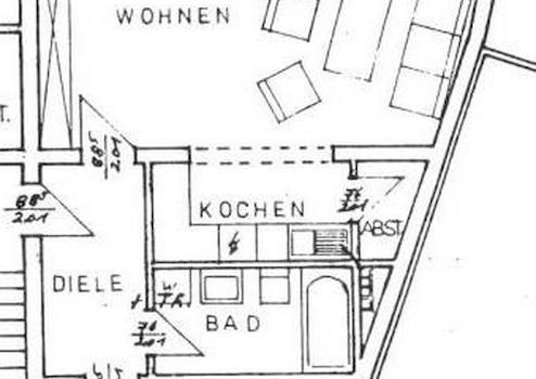 Die Wohnung besteht aus Diele, Wohnzimmer mit offener Küche, Schlafzimmer, Bad, sowie einem Abstellraum.