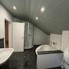 Im Obergeschoss befinden sich drei Zimmer mit zwei Bädern jeweils mit Duschen und Badewannen.