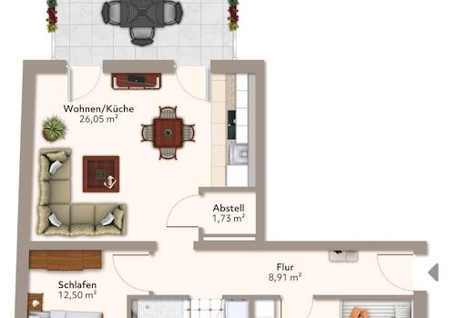 - offener Wohn- und Kochbereich mit Zugang zum Balkon