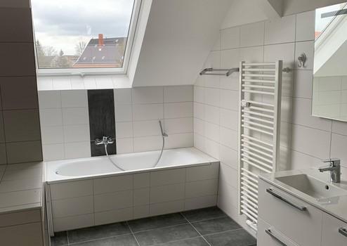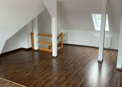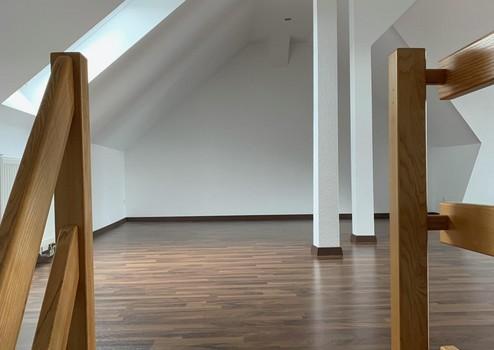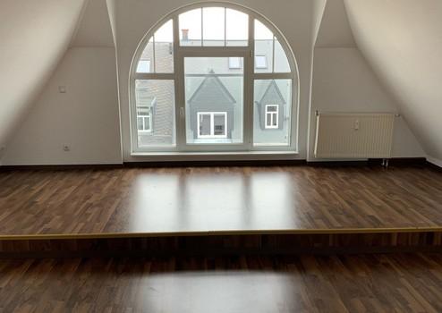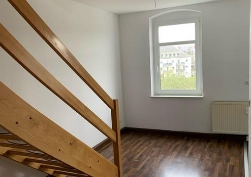 Im 4. OG des 1912 erbauten Gebäudes befindet sich die großzügig geschnittene Dreiraumwohnung. Die Wohnung verfügt über eine Küche mit abgetrenntem Essbereich (halbes Zimmer), wird jedoch ohne Einbauküche vermietet. Über die Treppe im Essbereich gelangt nach oben in das helle Wohnzimmer im Dachgeschoss. Ein modernes Badezimmer mit Doppelwaschbecken und Dusche sowie Badewanne befindet sich im unteren Geschoss der Maisonettewohnung. Die drei großen Zimmer sind gut geeignet für Paare mit Kind oder alternativ als WG. Sie ist bezugsfertig. Ein Stellplatz kann im Innenhof zusätzlich angemietet werden.