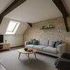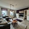 Über die Treppe erreichen Sie die zweite Wohneinheit. Hier erwartet Sie ein weiteres Wohnzimmer mit offenem Schnitt und gemütlichen Kamin. Die funktionale Küche bietet Platz für einen kleinen Essbereich. Zudem finden Sie ein Schlafzimmer, ein Kinderzimmer sowie ein modernes Badezimmer mit Dusche.