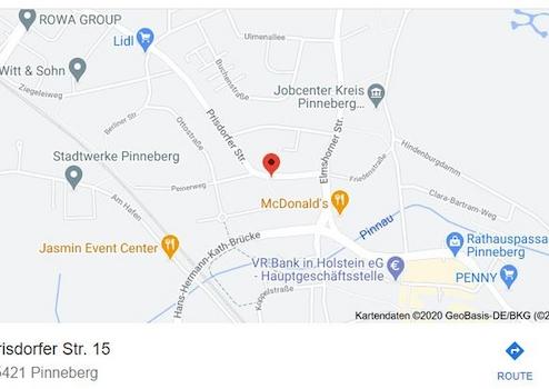 Das Haus mit 2 Wohnungen (EG und OG) befindet sich in zentraler Lage in Pinneberg, Prisdorfer Strasse 15, direkt am Fussweg, der zu Geschäften und Arztpraxis führt.