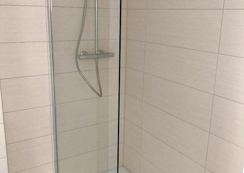 Modernes Bad-Konzept: Ein zeitgemäßes Badezimmer mit großer Dusche sowie ein separates WC sorgen für Komfort im Alltag.