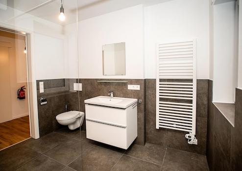 - Stromanschluss für Waschmaschine und Wäschetrockner im Bad